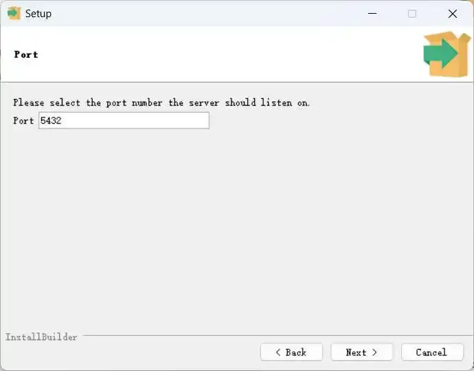 此外,需要配置PostgreSQL的端口號,如下圖所示。這裏建議就選擇默認的端口號,當然如果這個端口號在當前電腦上已經被使用了,那建議就選擇比默認端口號高1的數字——也就是5433;如果這個5433也被佔了那就繼續加1,以此類推。(端口號也最好記住)