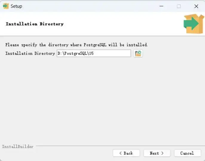 首先,是需要選擇一個PostgreSQL的安裝路徑。建議安裝在除C盤之外的其他路徑,如下圖所示。