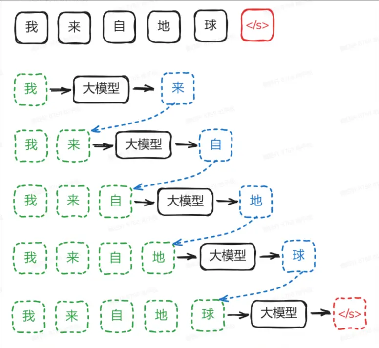 LLM,即大語言模型,本質上是一個“token 接龍”高手,它不斷預測下一個詞符。這種推理生成方式被稱為自迴歸模型,因為模型的輸出會作為下一輪的輸入,形成一個循環。