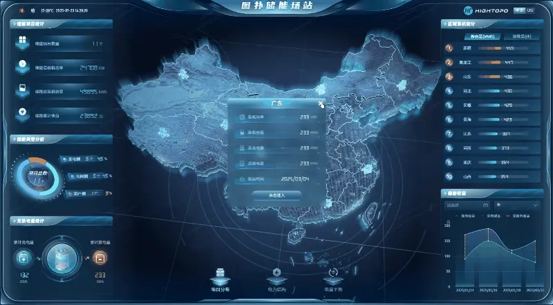 頁面中間以三維地圖直觀展示各儲能項目分佈,用户可清晰查看不同區域項目的具體地理位置,彷彿整個項目網絡平鋪眼前。