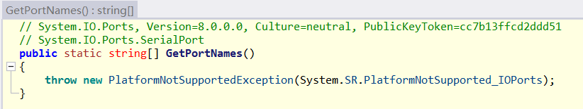 從卦中來看是 GetPortNames() 方法拋出來的平台不支持異常,這就很迷惑了。