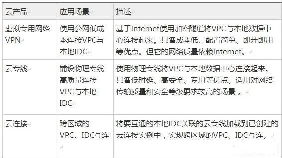 VPC與VPC之間要建立連接,可以通過如下雲產品實現。