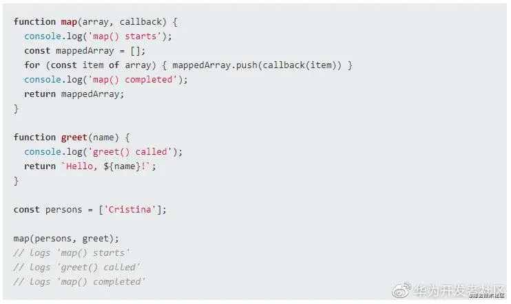 有意思的是 persons.map(greet) 方法可以接受 greet() 函數作為參數。這樣 greet() 就成了回調函數。