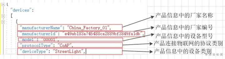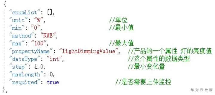 產品模型Profile本質是一個JSON文件。通過這個文件中的內容來表述一個產品或者設備的屬性和功能,並且必須按照文件的格式要求來編寫才可以被計算機來識別和處理(其實是依靠計算機中運行的程序來處理)。這個文件的編寫規則可以參考華為雲的文檔,這裏不再講述了。