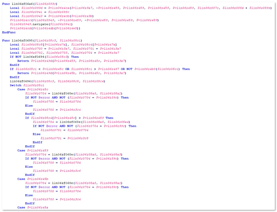 Setup_Activator.exe是初始化模塊,該模塊是個Autoit腳本編譯的,並使用混淆手段來躲避殺毒軟件查殺。相關代碼,如下圖所示: