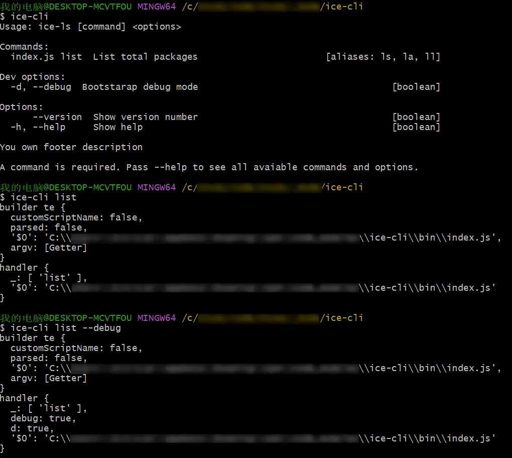 usage函數配置的提示:Usage: ice-ls [command] <options>。 - 接着是