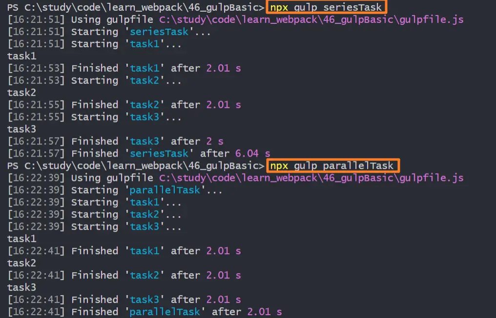 const seriesTask = series(task1, task2, task3);