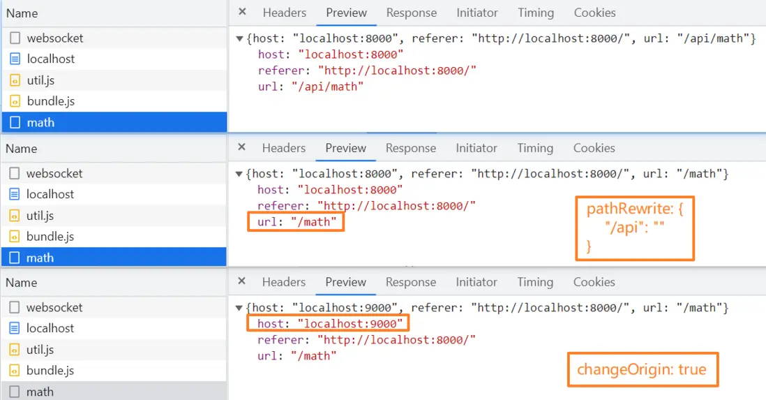 請求成功並獲取響應,但此時我們發現請求url地址多了個 "/api",以及請求源地址還是 8000端口