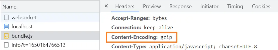 compress 屬性表示是否對編譯後資源壓縮,開啓後將採用 gzip 的壓縮方式,在響應頭標識 Content-Encoding,瀏覽器會自動解壓 gzip 文件