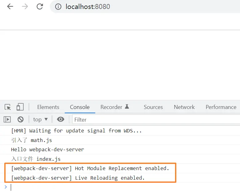 這時候我們就可以通過 Hot Module Replace (熱模塊替換)來實現,需要在 webpack.config.js 中開啓,以及需要使用 Hot Module Replace 的地方通過 module.hot.accept 引入。