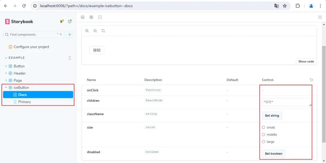 interface BaseButtonProps,storybook 會自動將這部分填充進來,並且部分屬性還可以直接在頁面上修改並預覽效果。