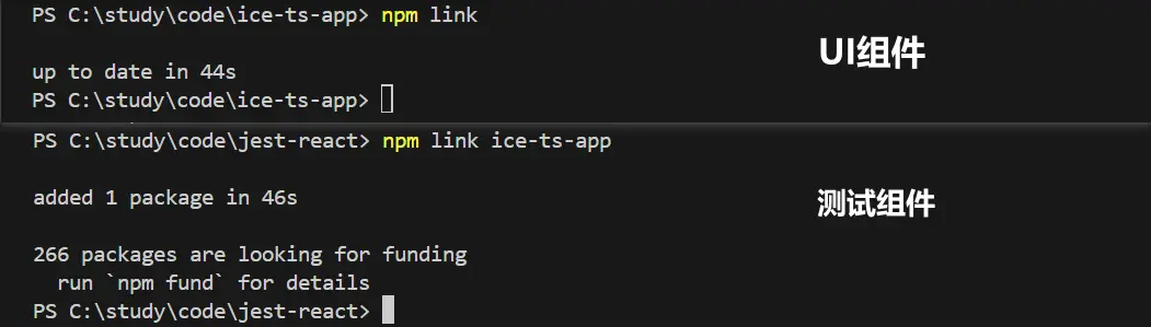 我的UI組件項目名稱為 ice-ts-app,對它執行 npm link,測試項目執行 npm link ice-ts-app,並引入測試代碼。