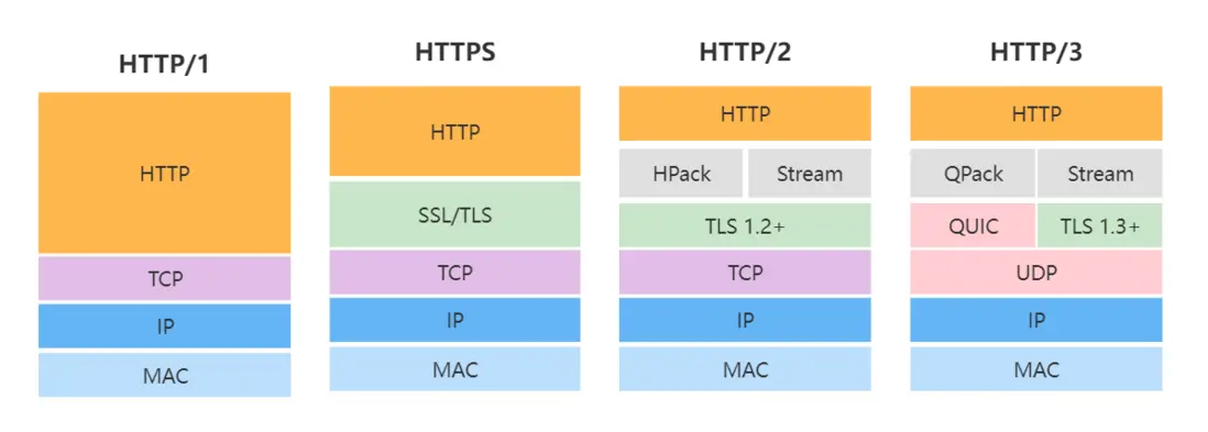為了解決以上問題,於是就有了 HTTP/3,HTTP/3 由 Google 開發,棄用 TCP協議,改為使用基於 UDP 協議的 QUIC 協議實現。