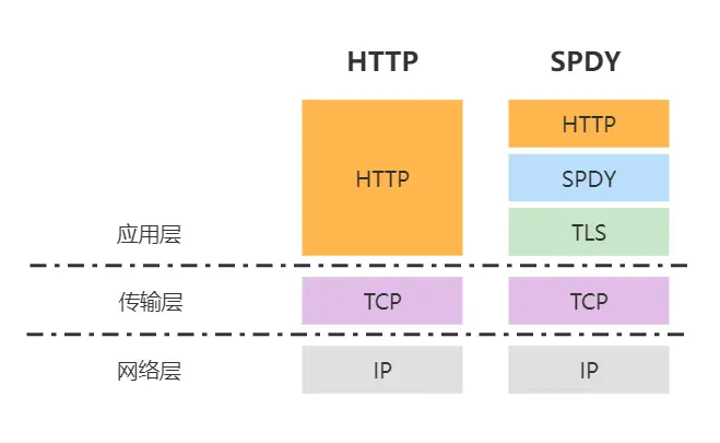 SPDY(speedy的縮寫),是基於 TCP 的應用層協議,它強制要求使用 SSL/TLS,SPDY 並不用於取代 HTTP,它只是修改了 HTTP 請求與響應的傳輸方式,只需增加一個 SPDY 層,現有的所有服務端應用均不用做任何修改,SPDY 是 HTTP/2 的前身。