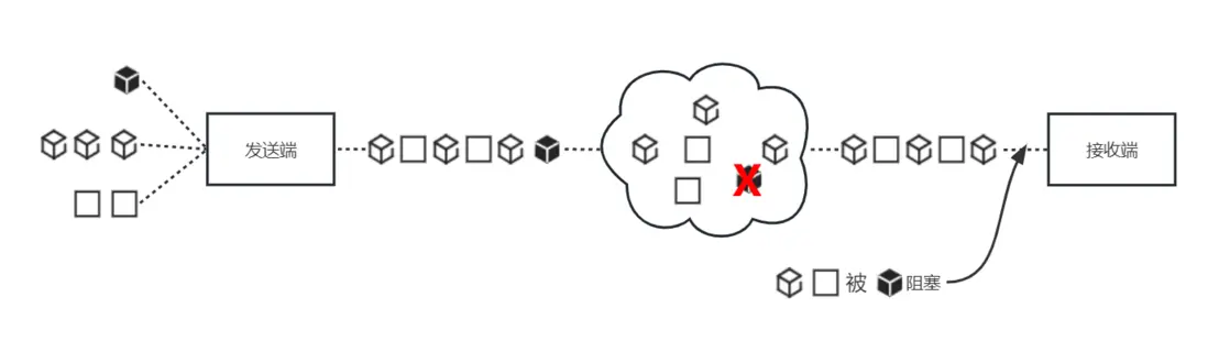 請求中如果丟失了一個包,導致後面的請求阻塞,此時會等待丟失的包重發,這是TCP底層決定的。