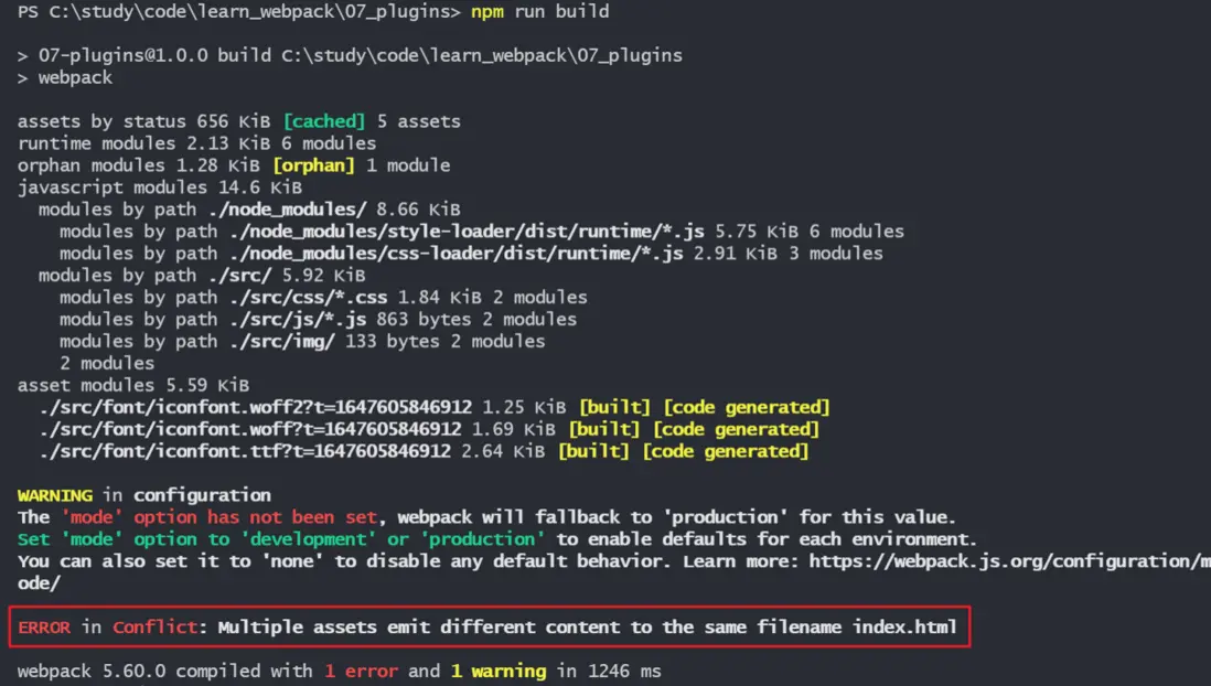 只配置複製文件來源是不夠的,因為HtmlWebpackPlugin已經處理了一次html,會報錯index.html文件衝突