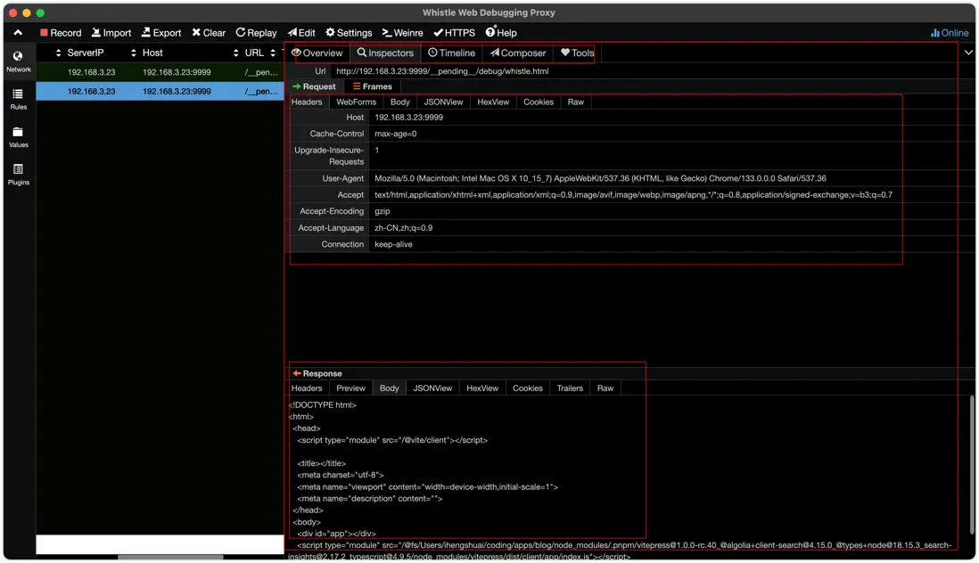 whistle 是基於 Node.js 開發的跨平台抓包調試工具。支持 HTTP、HTTPS 請求的抓包分析,並具有插件化、靈活配置的特點。Whistle 通過代理的方式攔截請求,開發者可以方便地重定向、修改請求/響應內容,或進行接口 Mock 等操作