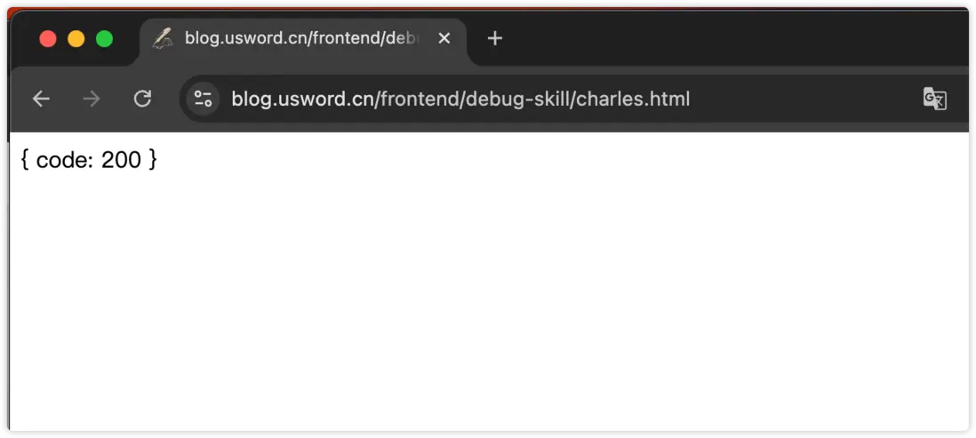 上面我們定義規則值 test 的響應內容為 code: 200,上面我們規則中攔截的是 usword.cn 的請求都返回test規則值,此時刷新網頁: