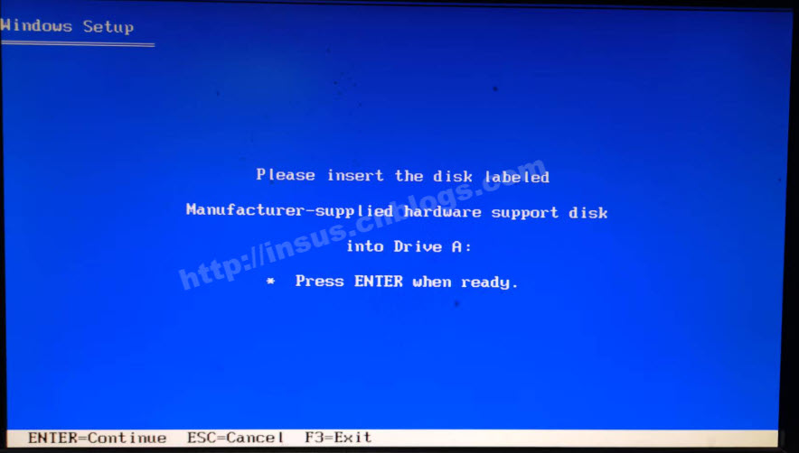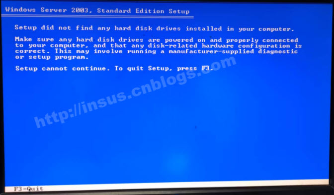 剛開始,忘記按F6安裝第3方驅動,如Raid驅動時,它提示:
