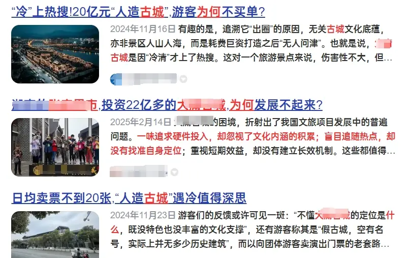 像大庸古城,在當初立項時沒考慮好宏觀環境,導致古城的選址和已有的自帶流量的景區分隔兩地,無法形成引流合力,自然吸引不來遊客。