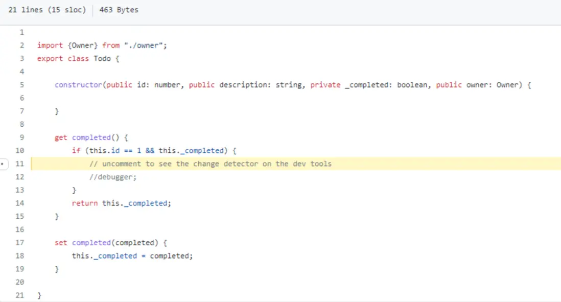 我們可以在 change detector 代碼中看到,owner 嵌套對象的屬性也在進行變更檢查。