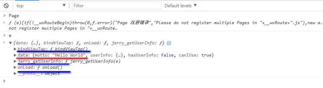 我們同樣可以在微信小程序調試器裏輸入 Page 然後回車查看這個構造函數的源代碼,