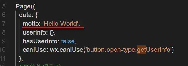 純文本元素,顯示的文本綁定到數據模型 motto 上。這個模型字段motto 硬編碼成 Hello World,所以我們最後在小程序上看到顯示的“Hello World".
