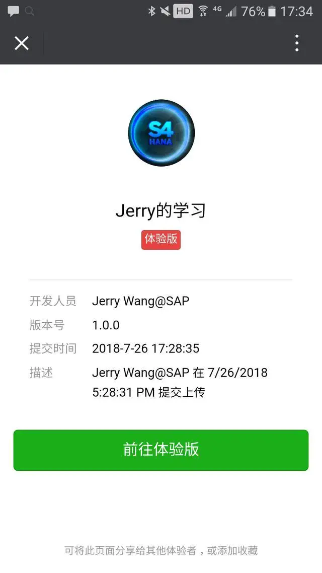 當您的朋友在手機上掃描該二維碼,會看到如下界面:該小程序標註了體驗版的提示: