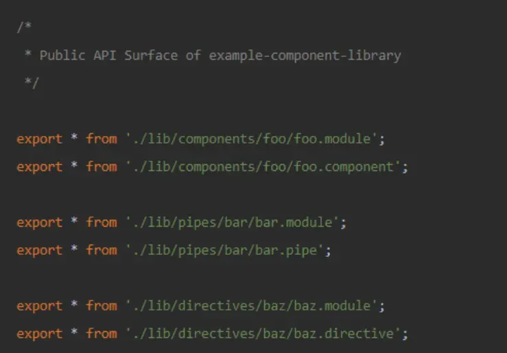 我們現在更新 public_api.ts 以導出庫中我們希望公開給消費應用程序的任何文件:
