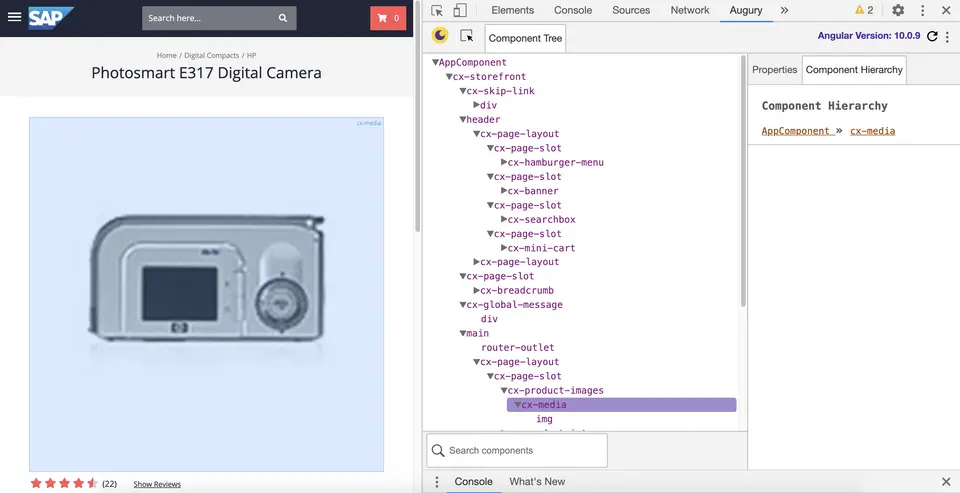 使用 Augury Chrome 插件,您可以在瀏覽器中構建頁面後查看生成的組件層次結構。