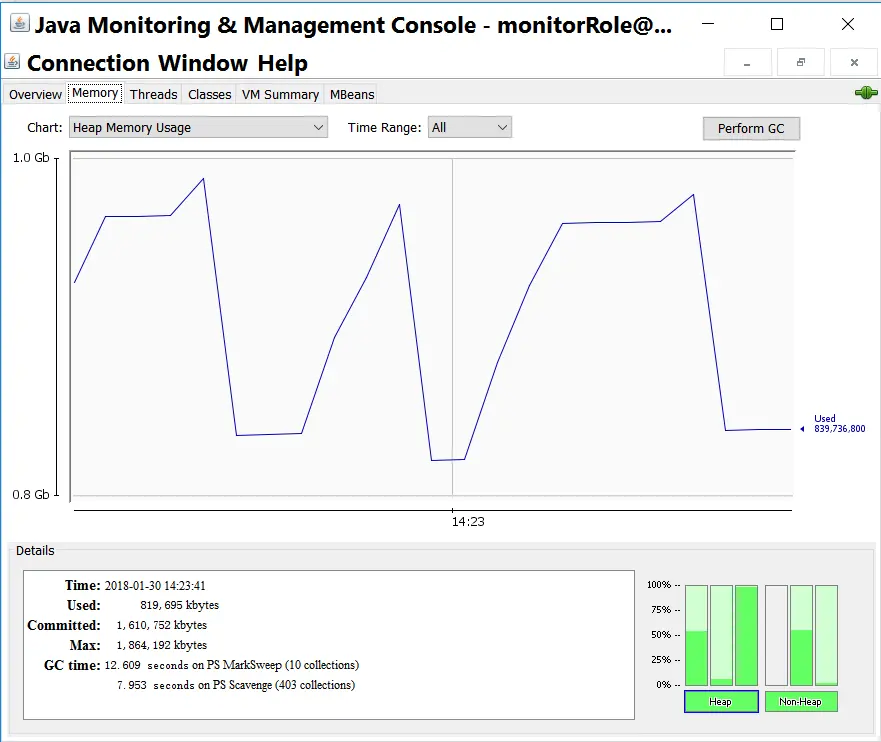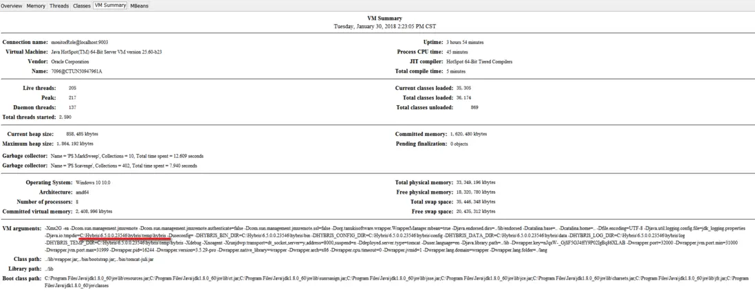 Here below is how to use jconsole( a built-in tool provided by JDK ) to monitor Hybris Commerce runtime behavior.