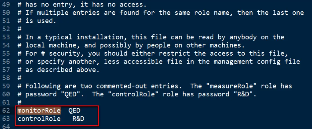and remove the # in front of monitorRole and controlRole to make both take effective. Once done, the content of this file looks like below: