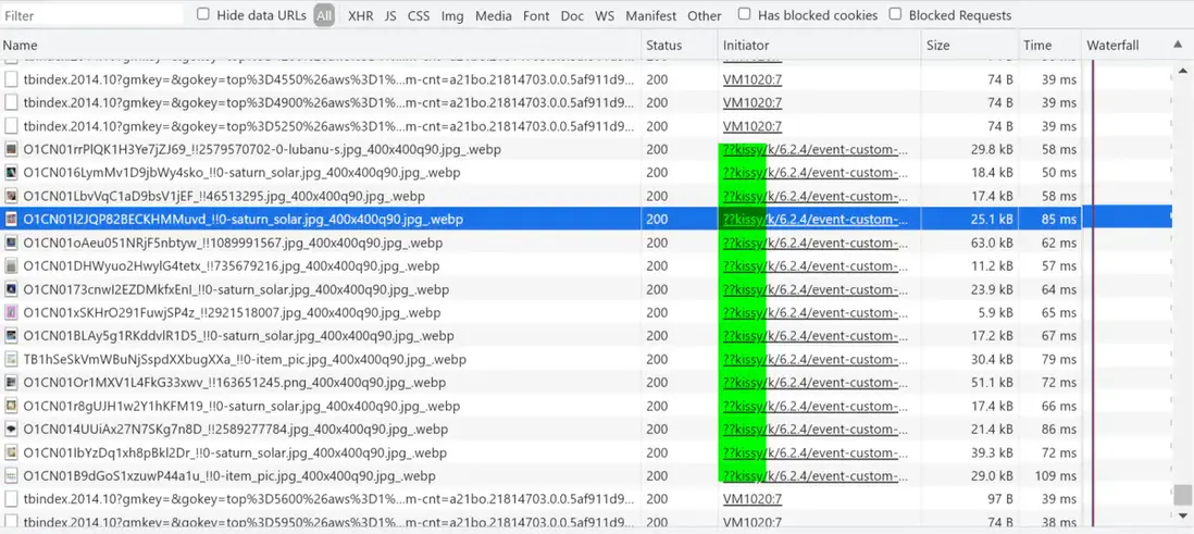 我們在某寶網首頁看到琳琅滿目的商品圖片,都是被 Kissy 驅動,通過向 CDN 服務器發起的數據請求而被加載的: