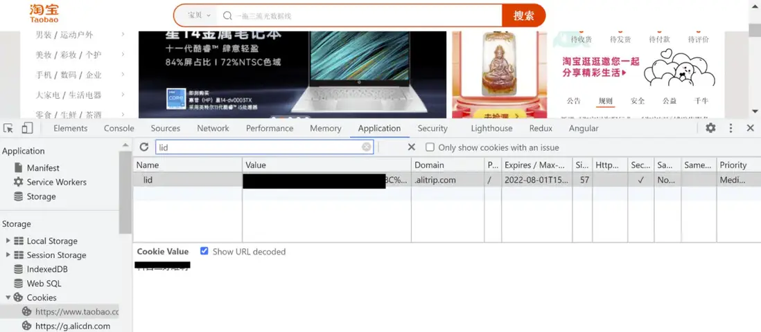 我們首先看看大家日常生活中都會使用的某寶網站的用户會話管理機制。
