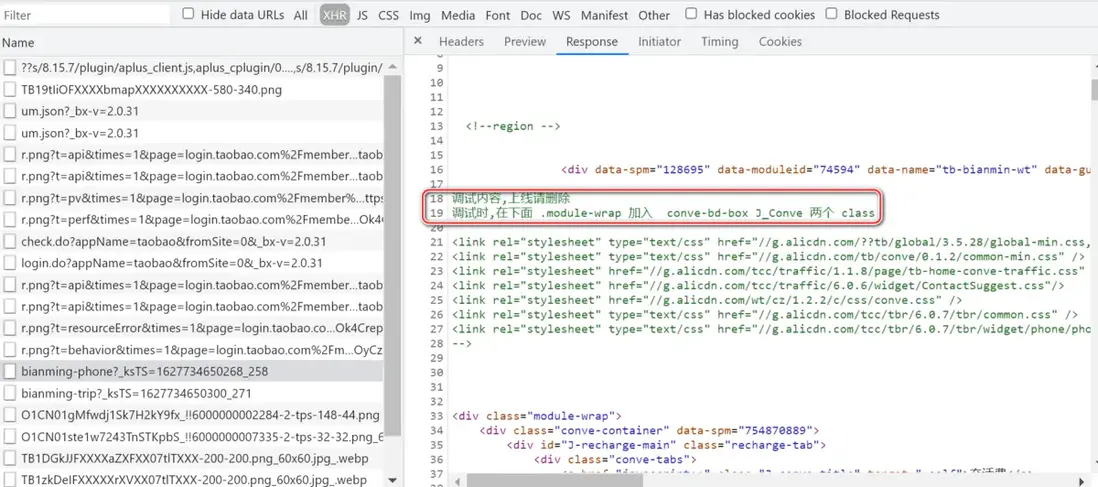 在這些頁面片段的源代碼裏還看到一些有意思的內容,比如這種“上線請刪除”的註釋。我現在瀏覽的就是上線後的代碼呀,咋還能夠看到這些註釋 :)