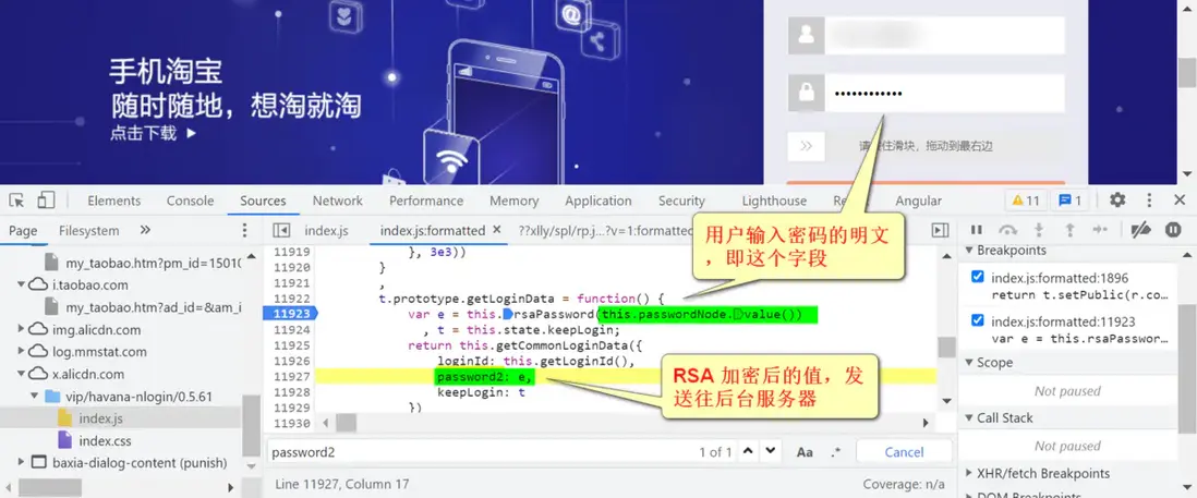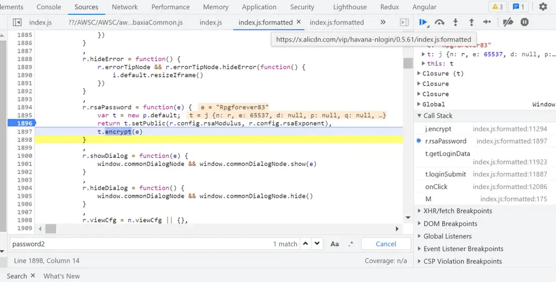 下面介紹如何自行找到前端將用户輸入的登錄密碼進行 RSA 加密的準確位置。