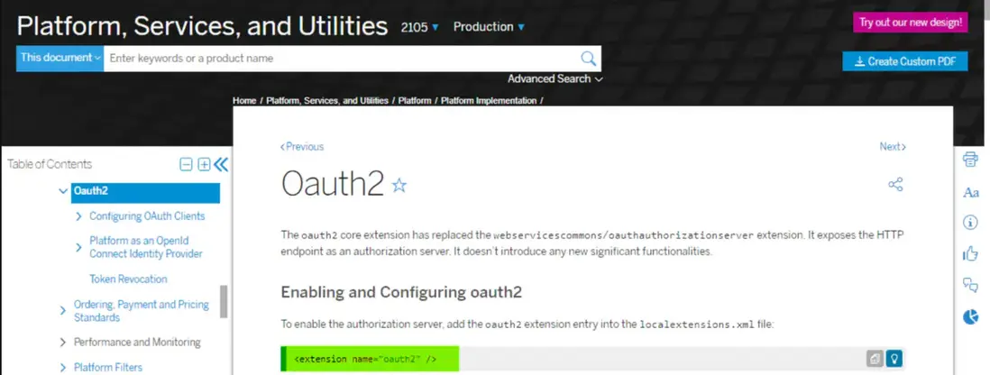 SAP Commerce Cloud 有個名為 Oauth2 的 extension,基於 OAuth 2.0 協議實現了用户認證和令牌頒發/功能,支持 OAuth 2.0 協議定義的包括 Resource Owner Password Flow 在內的全部四種認證流。