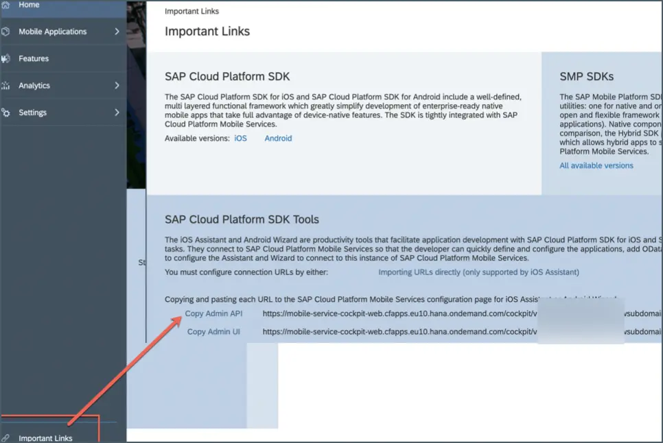 將mobile service控制枱裏的admin API url拷貝下來,