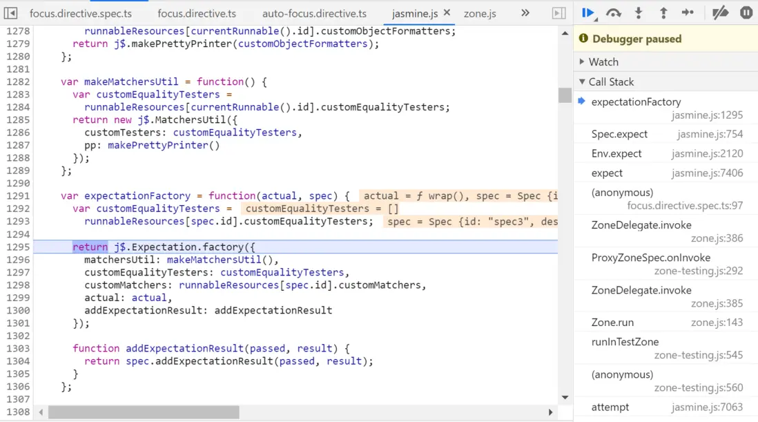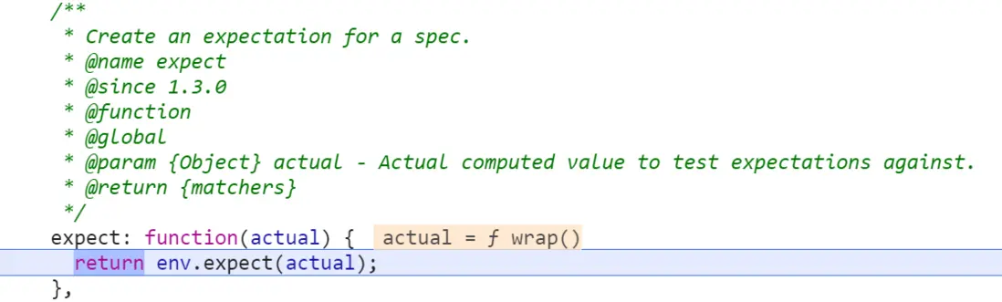 expect方法:基於傳入的spec創建一個expectation. 在我們的例子裏,傳入的spec就是keyboardFocusService.findFirstFocusable被spy之後的版本: