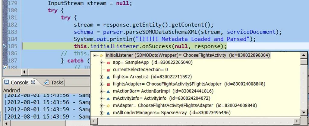 Since service document is loaded, next step is to try to load meta data. This is a state machine.