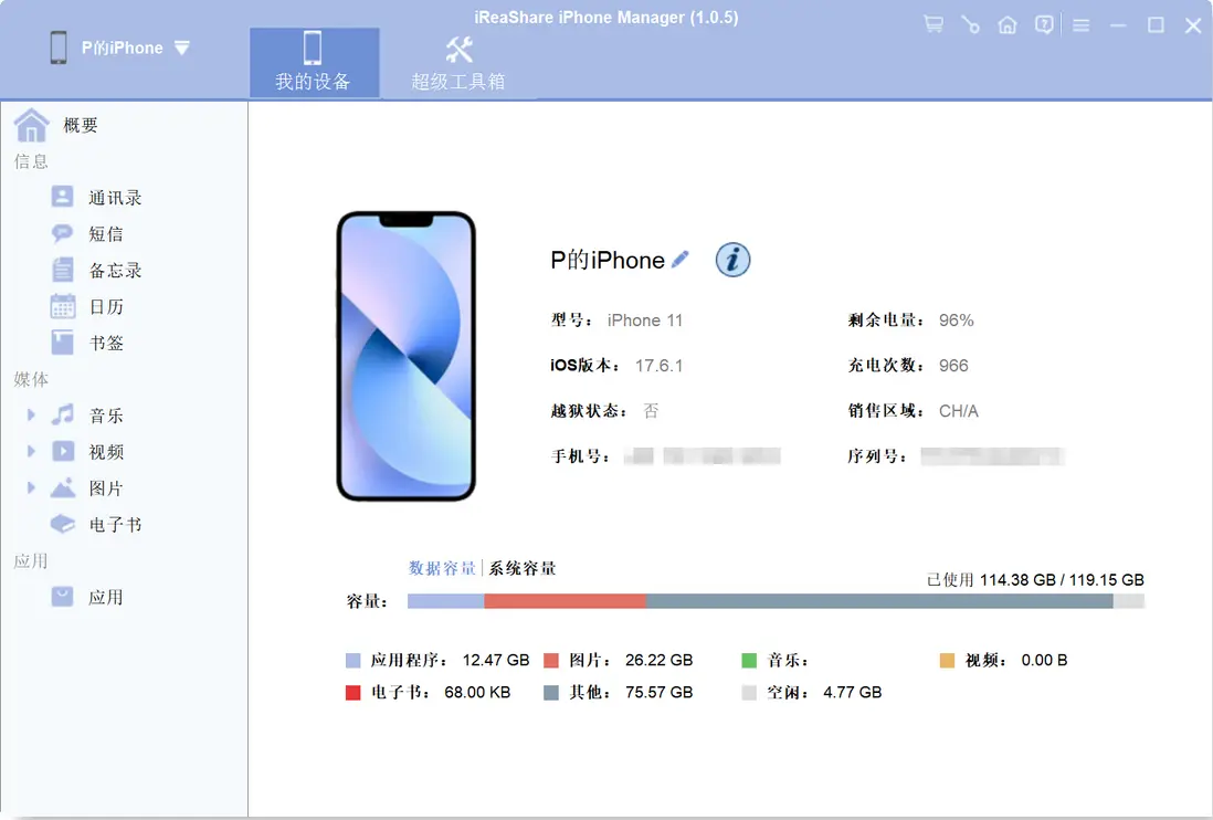 最後,我們強烈建議您使用iReaShare iPhone Manager提前備份您的 iPhone 數據。除了備份之外,它還允許您直接在計算機上編輯和管理照片、聯繫人、音樂、視頻等,還可以將它們傳輸到您的計算機或外部硬盤上。