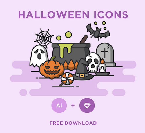 Free Halloween icons (available in AI and Sketch formats) that have been designed in three different sets: flat, line and colored. Thank you, AomAm!