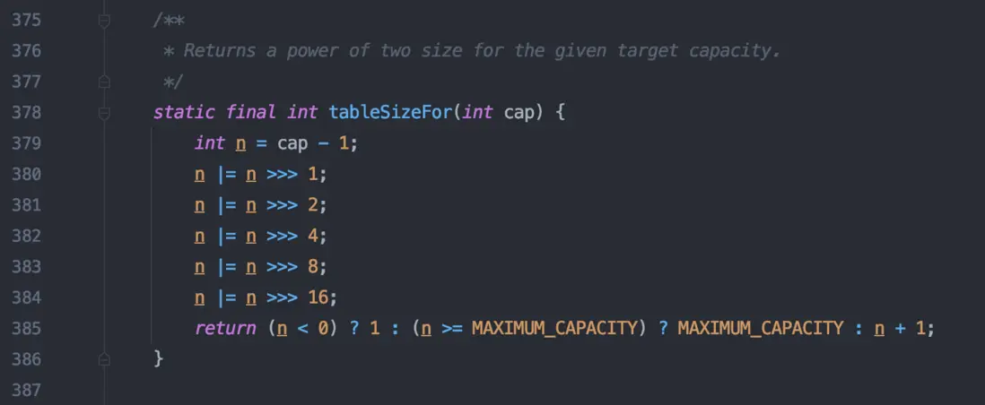 PS: 這個方法是 HashMap 用於計算初始化容量,結果是返回大於給定值的第一個偶數,比如 :