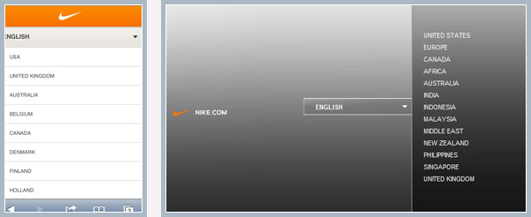 Nike has produced a mobile site that is attractive, easy to use and most importantly for this article, completely different from their full scale site. A quick look at a few different areas of the site reveals a noticeable difference not only between the designs but also between the functionality of the two sites.