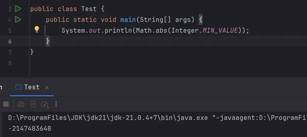 上面的代碼輸出的結果並不是 Integer.MIN_VALUE 的絕對值,輸出的結果是它自己,如下圖所示: