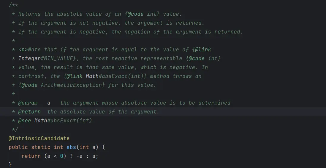 那 Math.abs() 方法做了什麼操作呢?查看 Math.abs() 方法的源碼,實現邏輯如下: