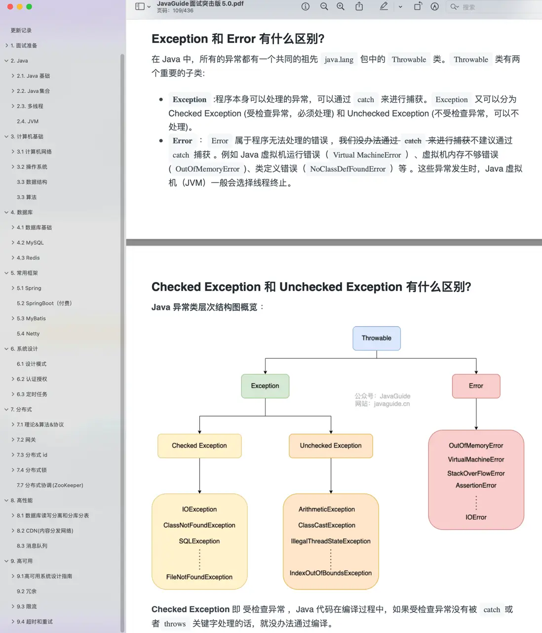 並且,這個項目還推出了 PDF 版本,目前已經更新到第五版了,完全免費:完結撒花!時隔 596 天,《JavaGuide 面試突擊版》5.0 來啦!。