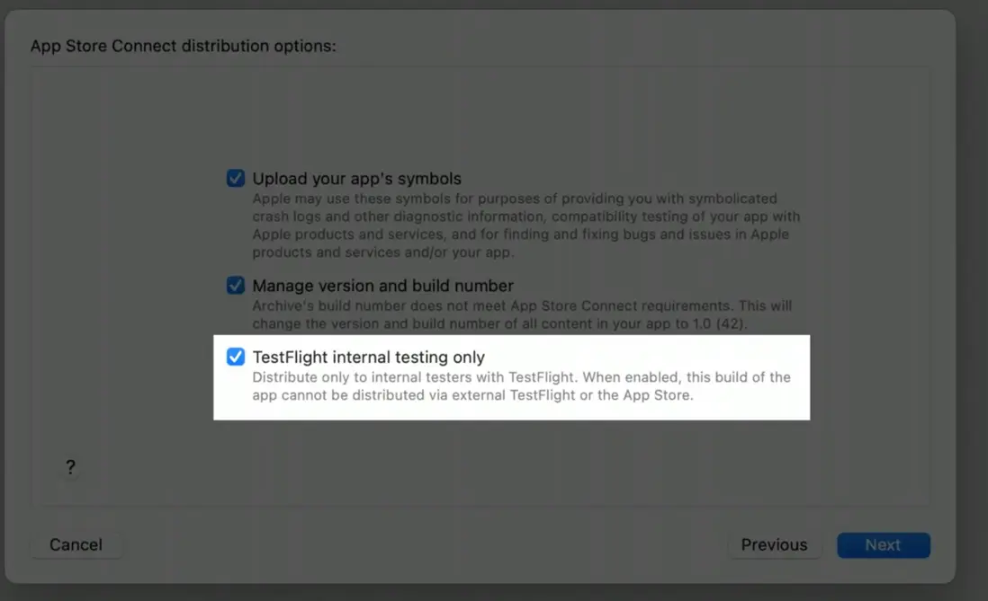 • TestFlight 僅分發到內部測試