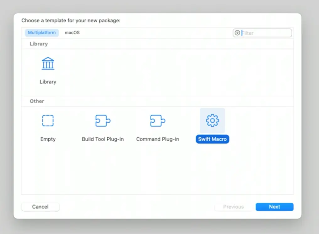 然後選擇 Swift Macro